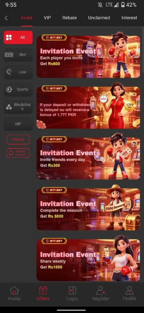 This online earning app offers stable gameplay, simple withdrawal methods, and multiple gaming categories. It also supports local payment options, making payouts easier for everyone. New users can start earning with small deposits and enjoy bonus credits during registration. B77 Game also includes lottery games, pg slots, and many other trending casino choices. In short, it is becoming a popular earning tool among young Pakistani players.