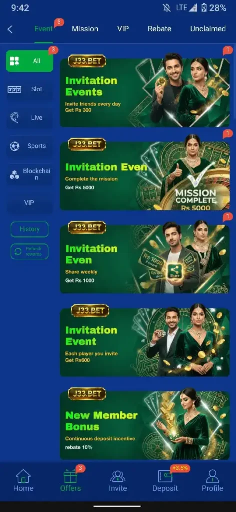 You can earn from the J33 Game referral system by sharing your unique referral link with friends and family. When someone registers using your link, you receive a fixed reward instantly. If your referred users play games or deposit money, you earn extra commission daily. This system helps users build passive income without playing continuously.