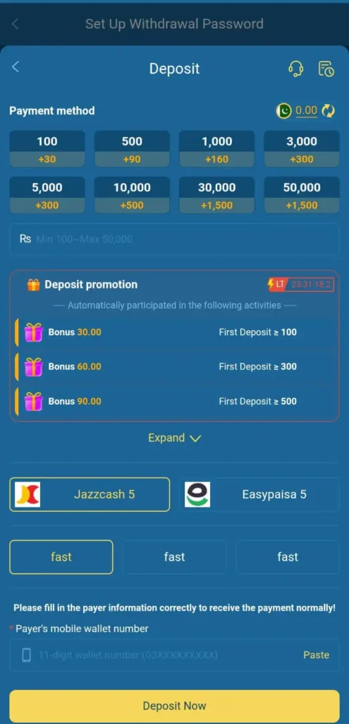 One of the biggest advantages of this game is its local payment integrations. Users can deposit and withdraw money easily using Easypaisa, JazzCash, or bank transfer. This makes the platform convenient for everyday users in Pakistan. The app also offers quick support, transparent results, and a fair gaming environment, which builds trust among players.