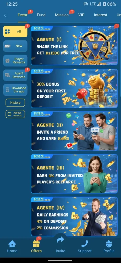 RR3 gives users the chance to earn real money through simple predictions. Each correct guess results in instant rewards credited to the wallet.