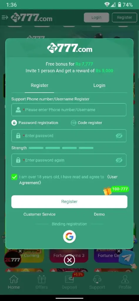 Creating an account on the ZT777 Game is simple and quick for new users. You start by opening the app, entering your mobile number, and verifying the OTP. After setting a secure password, complete the form and access your dashboard instantly.